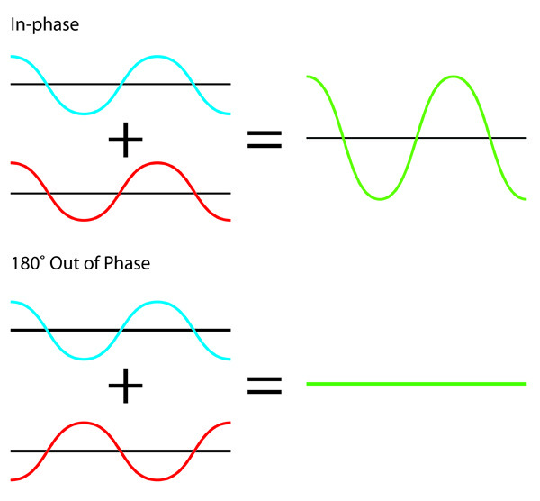 이 두 신호가 겹치면 상쇄되어 들리지 않게 되는 것입니다.